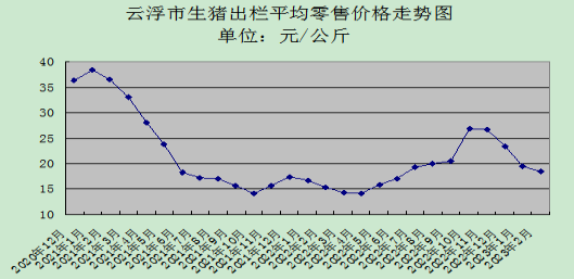 2月份,我市生猪市场供应充足,价格总体保持稳中有降。生猪(三元)平均出场价每公斤为18.53元,跌幅继续扩大,与上月环比降3.89%,与去年同期比升22.8%。