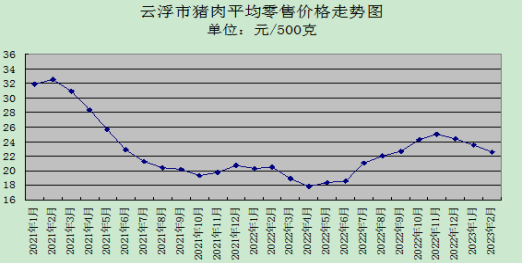 2月份猪肉供应充足,价格微幅下跌,所监测的四种猪肉品种每500克平均零售均价22.52元。其中,排骨、瘦肉、上肉、肋条肉零售价与上月环比分别降2.80%、4.59%、8.45%、8.18%。
