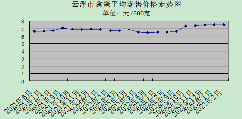 2月份,我市禽蛋市场供应充足,价格总体走稳。4种禽蛋市场零售均价每500克为7.51元,与上月环比升0.31%,与去年同期比升11.59%。