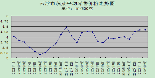 2月份,我市蔬菜供应充足,价格平稳,所监测的30种蔬菜品种,零售均价每500克为4.34元,与上月环比升0.23%,与去年同期比升2.84%。