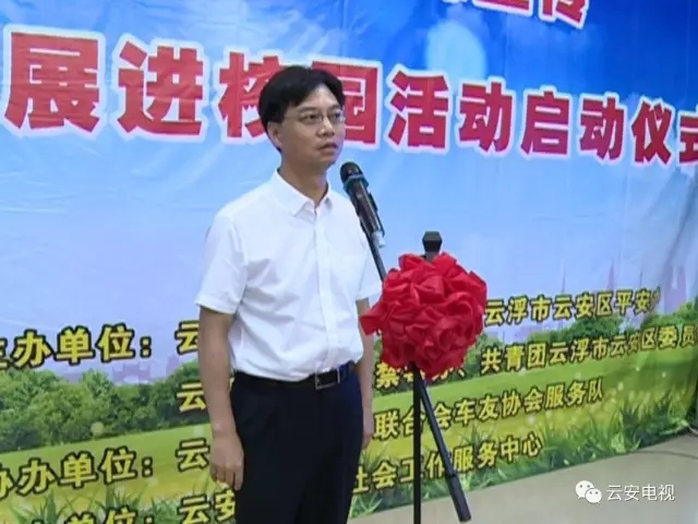 云安区副区长、市公安局云安分局局长、区禁毒委副主任司徒耀荣在启动仪式上致辞,他希望学校要以青少年健康成长为己任,以禁毒宣传进校园为契机,积极开展“中小学生毒品预防专题教育”工作,帮助学生远离毒品,拒绝毒品;广大学生要深刻认识毒品的危害,牢固树立“珍爱生命、远离毒品”的观念,树立正确的人生观、价值观,切实了解毒品的危害,增强拒毒、防毒意识,从自身做起,争做拒毒防毒的实践者。