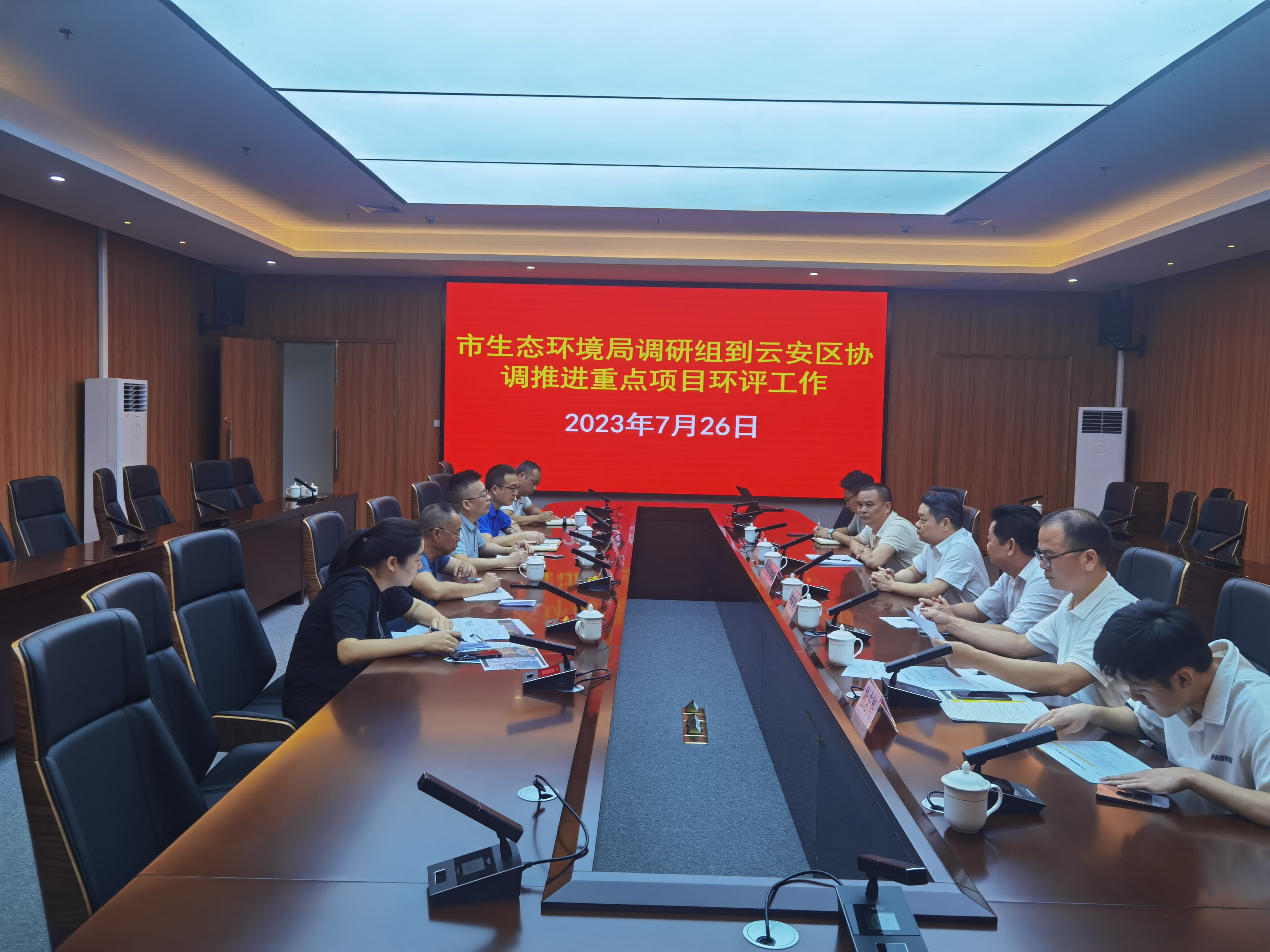 为贯彻落实市政府主要负责同志调研云安区重点项目建设时有关指示精神,用实际行动践行服务企业的环保担当作为,7月26日,市生态环境局党组书记、局长梁志强率调研组一行到云安区协调推进重点项目环评工作。市生态环境局云安分局和云安区园区管委会主要负责人及企业负责人参加协调会议。