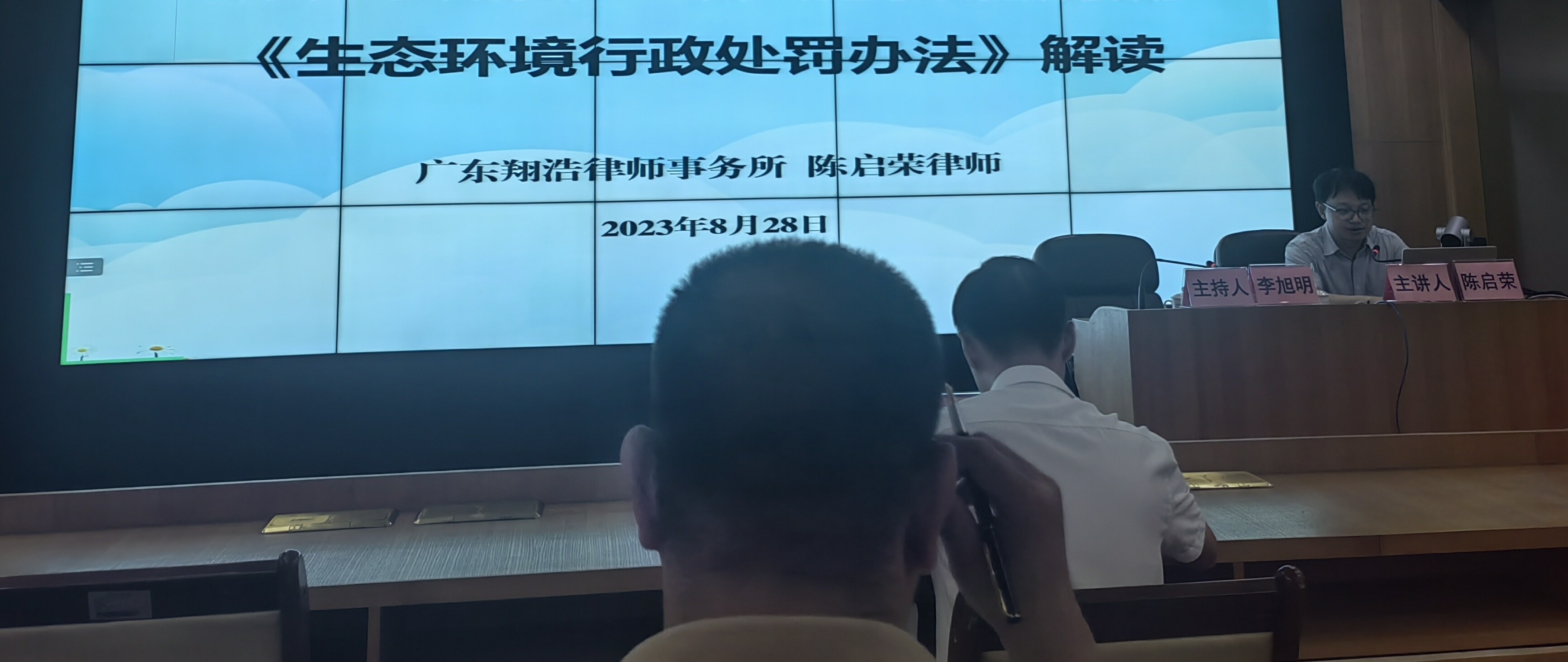 三是举办生态环境法治培训班。邀请了广东翔浩律师事务所律师从《生态环境行政处罚办法》的修订背景、修改内容的十个亮点等方面对《生态环境行政处罚办法》进行深入、全面的解读,并提出执法过程中要注意在协助调查、现场检查笔录、现场采样监测、证据先行登记保存、处罚文书制作等方面变化调整的有关规定,帮助执法人员和法制审核人员如何准确理解把握落实好新修订的《生态环境行政处罚办法》,全面深刻领会《生态环境行政处罚办法》实质内涵和精神要义,有效促进了行政执法人员和法制审核人员行政执法能力和法制审核水平的提高。