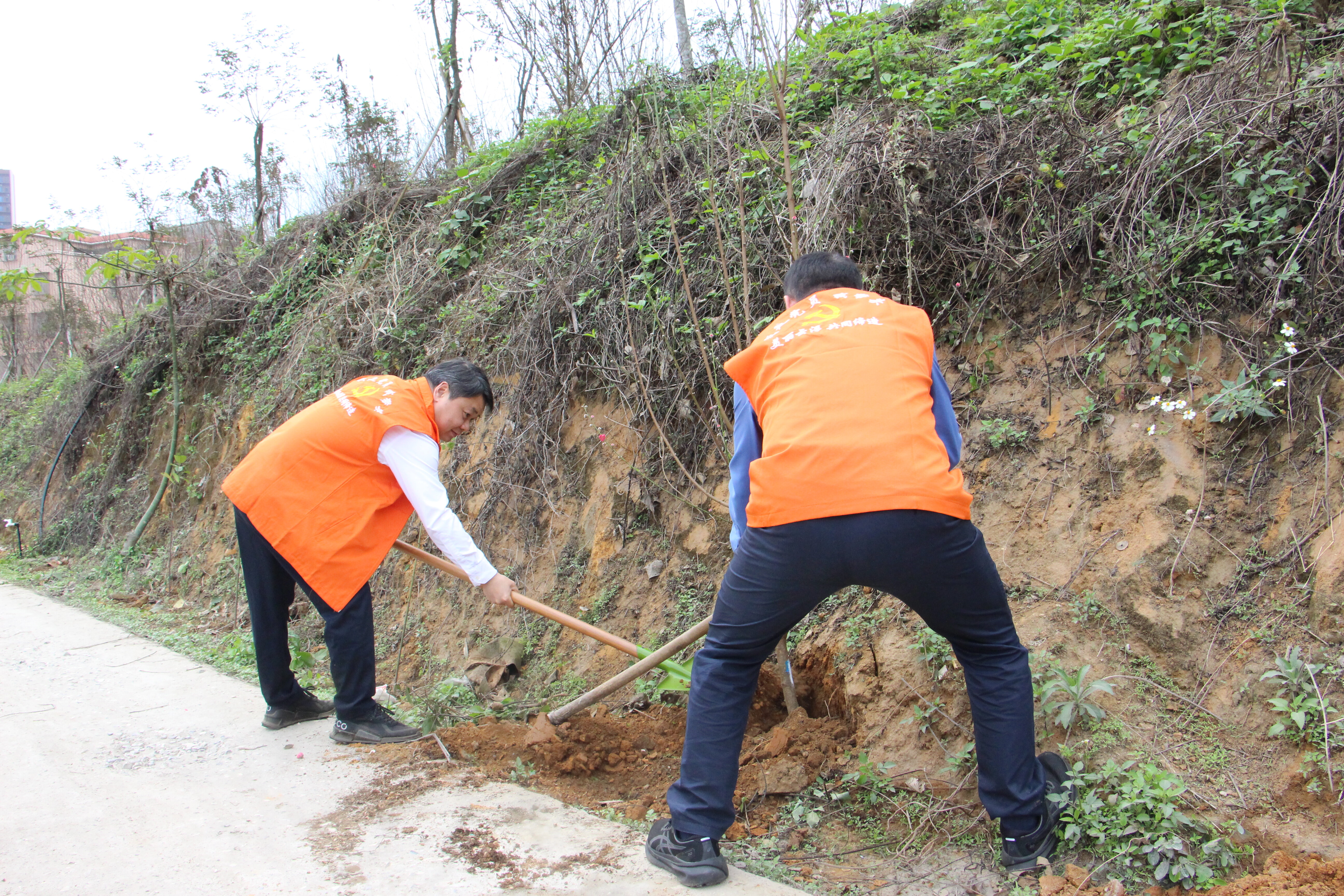 植树过程中,党员干部们积极投入到义务植树活动中,大家挥动着手中的锄头和铁铲互相协作,各担其职,有奋力挖坑、有扶稳树苗、有回填泥土、有浇水加固的,配合有序地种植好一株株树苗。