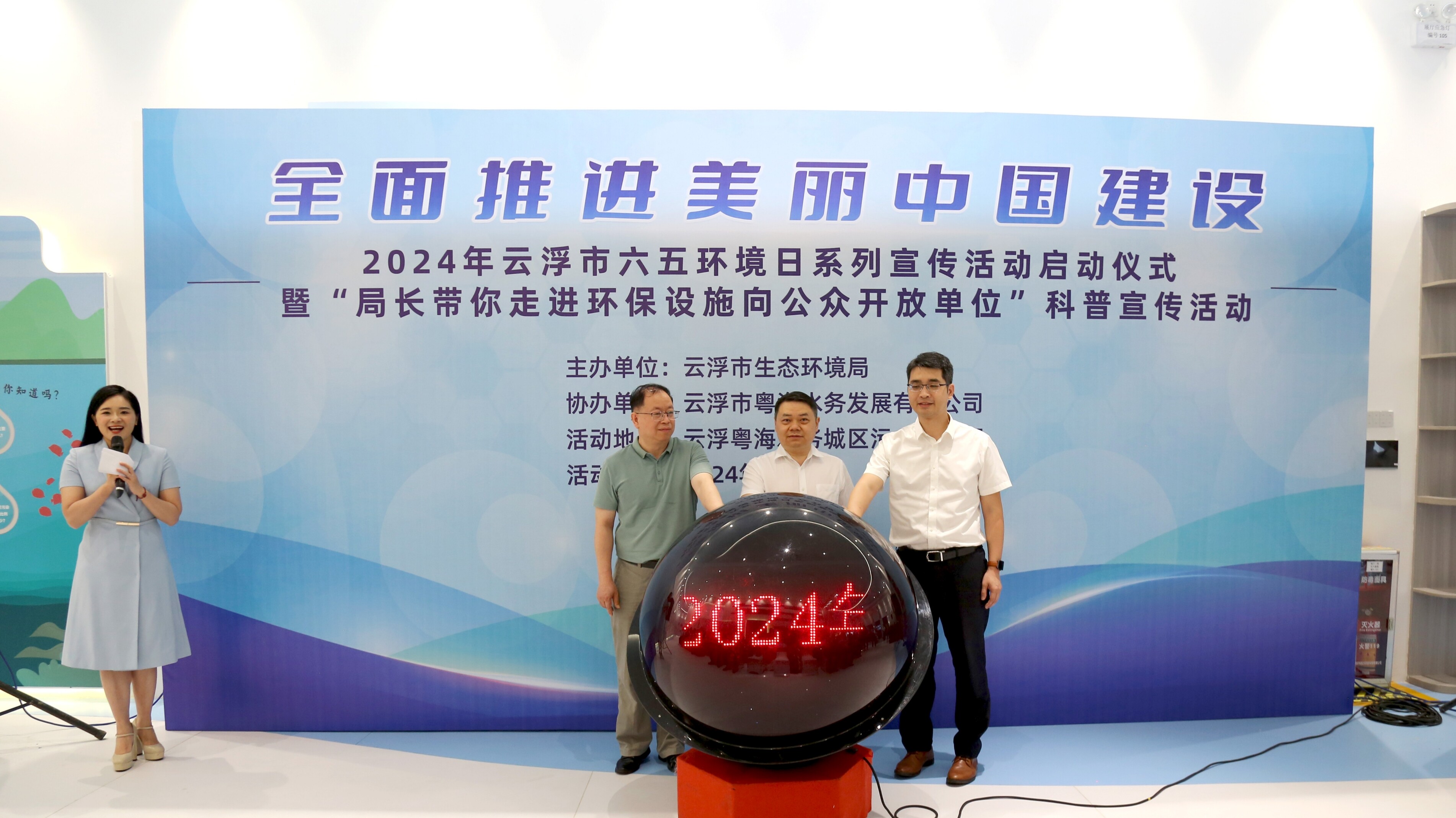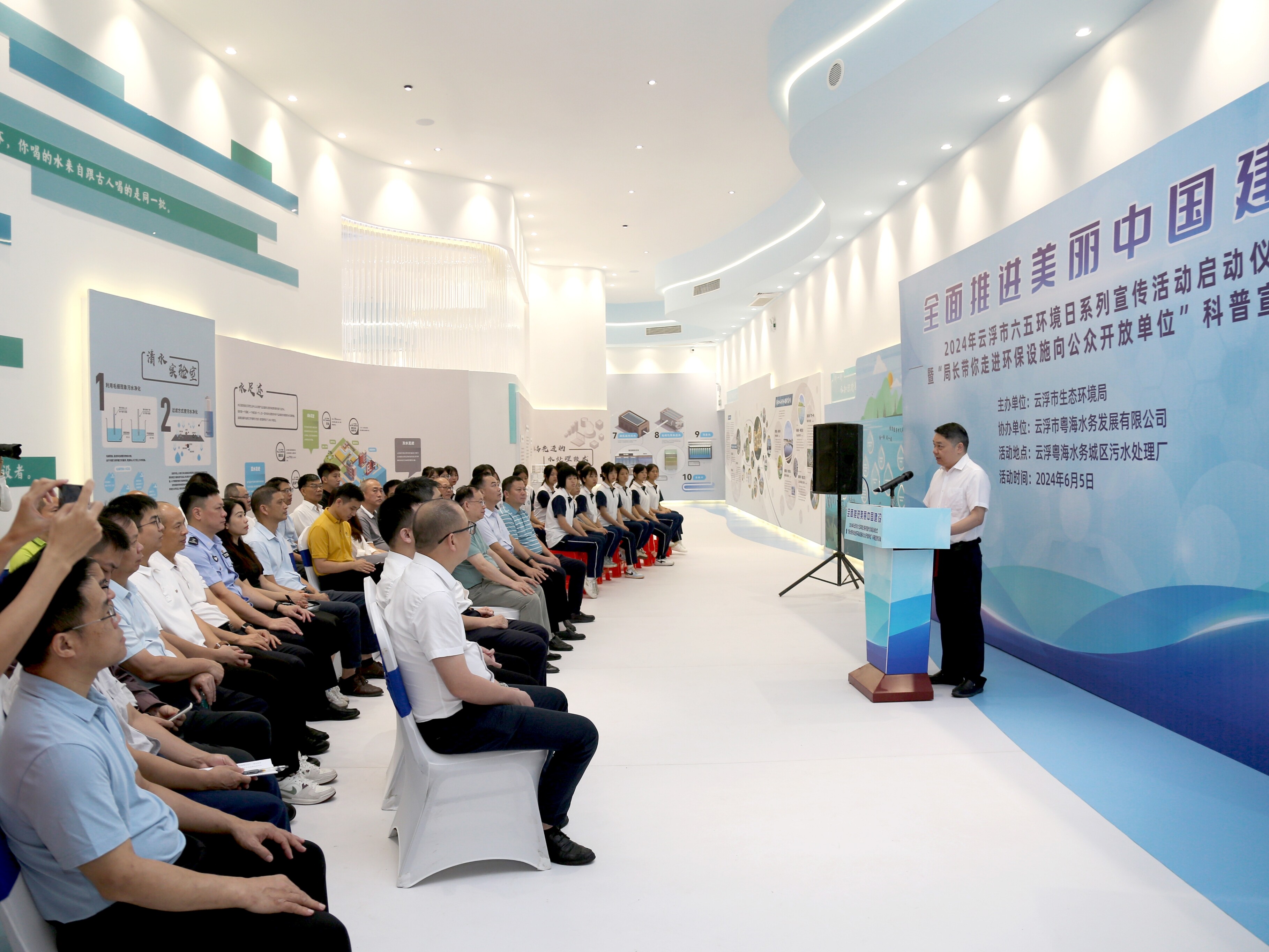 2024年6月5日上午,云浮市生态环境局围绕“全面推进美丽中国建设”主题,在云浮粤海水务城区污水处理厂举行了云浮市2024年六五环境日系列宣传活动启动仪式暨“局长带你走进环保设施向公众开放单位”科普宣传活动。