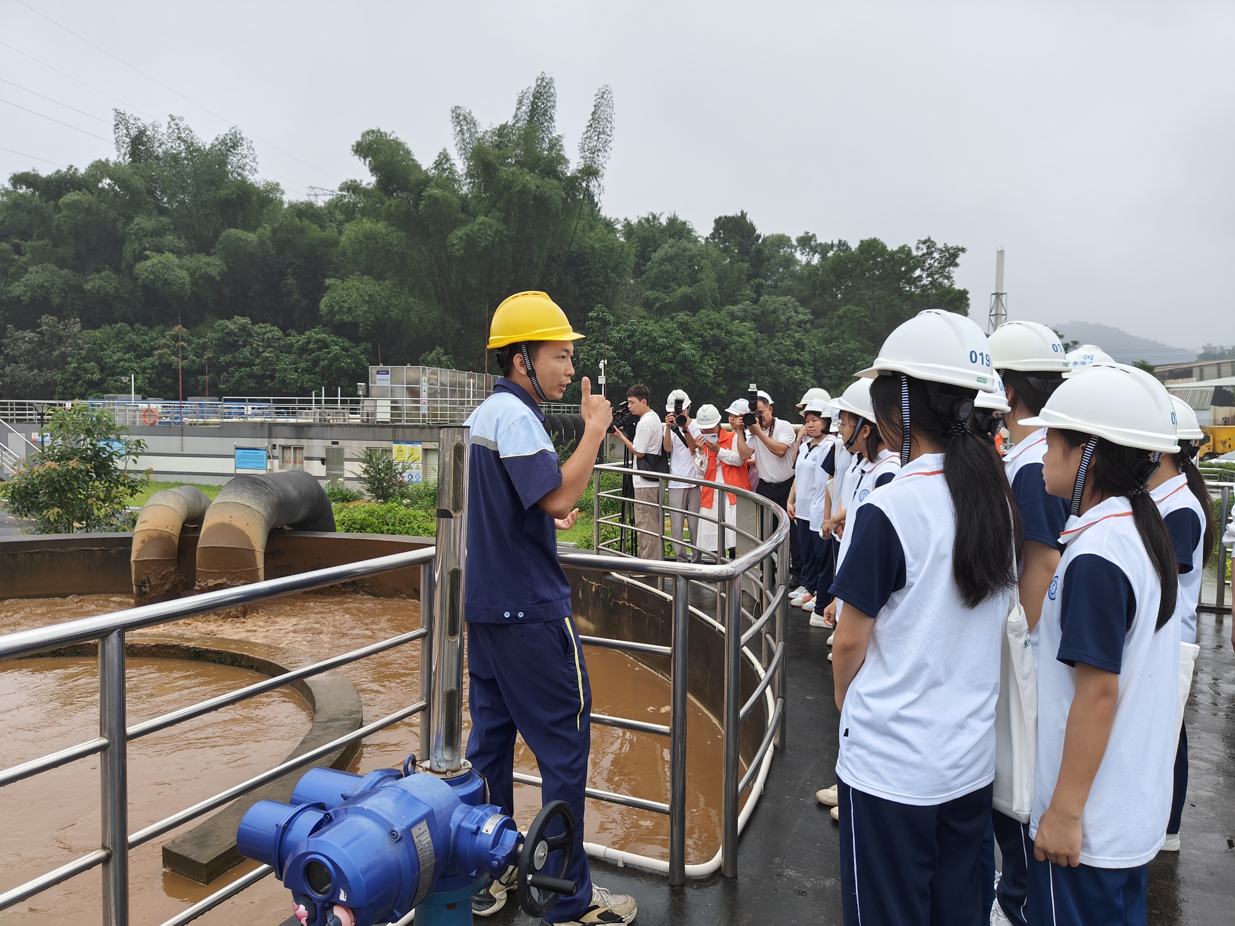 ▲图为学生参观污水处理设施