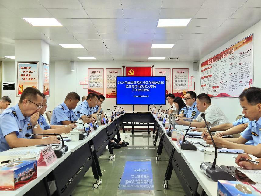 会议传达学习了习近平总书记关于生态环境保护工作和党风廉政建设系列重要讲话和重要指示批示精神,以及省、市有关工作会议部署要求,听取了有关科室和各分局2024年上半年生态环境执法和执法大练兵等工作情况汇报,深入分析研判我市当前生态环境执法工作形势和问题,并对下一阶段全市生态环境执法工作和执法大练兵进行了具体部署。