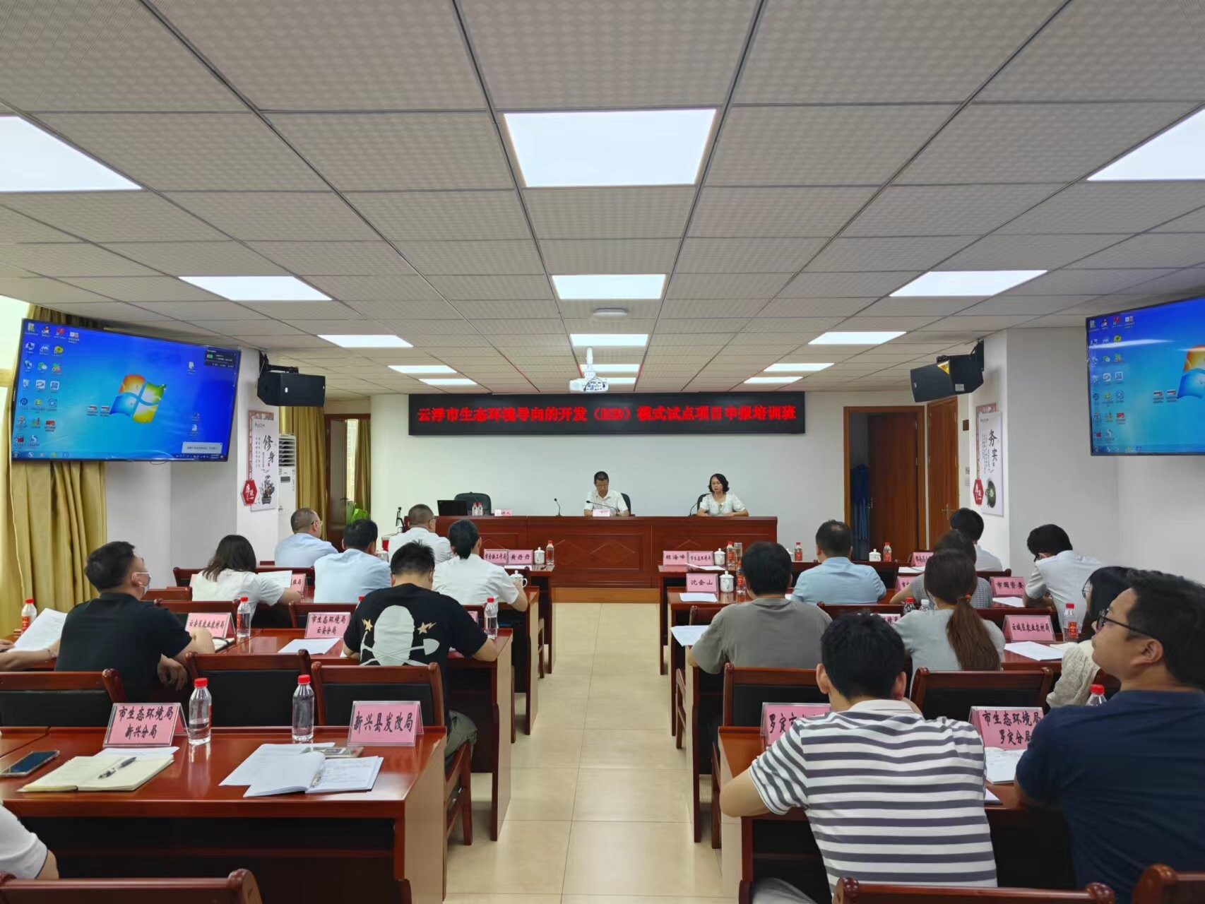 为践行“两山”理念,推进生态产品价值实现,加强金融对深入打好污染防治攻坚战的精准支撑,推动我市生态环境导向的开发(EOD)模式试点项目申报,市生态环境局联合市金融工作局在市金融工作局大会议室举办云浮市生态环境导向的开发(EOD)模式试点项目申报培训班。培训由市生态环境局赖海峰同志主持,省环境技术中心沈会山、农业发展银行云浮市分行陈桂容进行了授课,市金融工作局有关分管领导、各县(市、区)政府、市直有关部门以及有关园区管委会等单位共46人参加培训。
