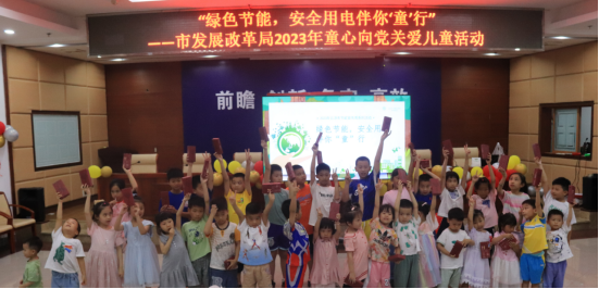 为深入贯彻落实习近平生态文明思想,营造简约适度、绿色低碳、文明健康的社会风尚,大力倡导绿色低碳生产生活方式,普及节约用电、安全用电意识,不断增强我市全社会节能降碳和安全意识,加快促进经济社会发展全面绿色转型,积极营造平安和谐的社会氛围,市发展改革局于2023年6月3日上午举行了2023年童心向党关爱儿童活动。党组成员、副局长区惠红同志出席本次活动。