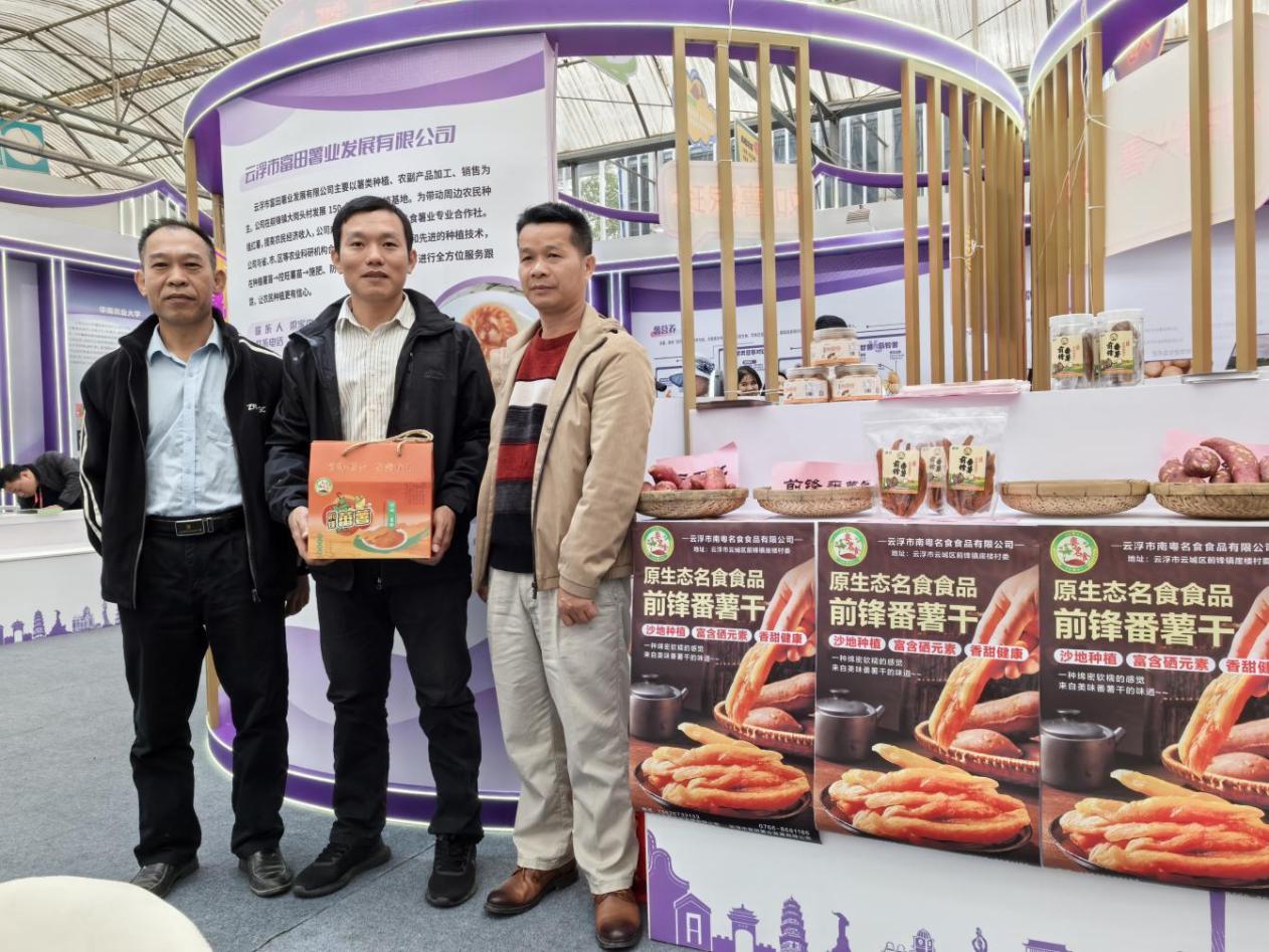 为切实解决甘薯销售难、薯农效益低等产业问题,团队积极推动甘薯产业向二三产业延伸,特邀请了广东锦泰农副产品有限公司负责人到前锋镇调研甘薯产业情况并建言献策。同时,会同云浮市富田薯业发展有限公司开发甘薯茶和甘薯馅饼等一系列甘薯加工产品,积极参加省种博会等进行宣传推介,以企业加工销售带动个体农户种植。在各方的大力支持和指导下,前锋镇的甘薯产业有了较快的发展,甘薯知名度提高、品牌效应初显。