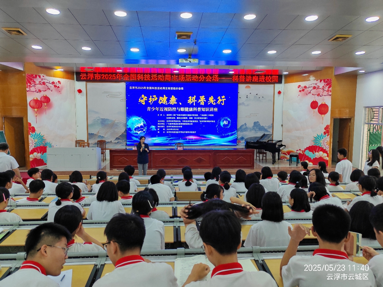此外,还同步在市邓发纪念中学设置分会场,开展“守护健康、科普先行”——青少年近视防控与眼健康科普知识讲座,邀请眼科专家为同学们上了一堂生动有趣的科学护眼知识课。