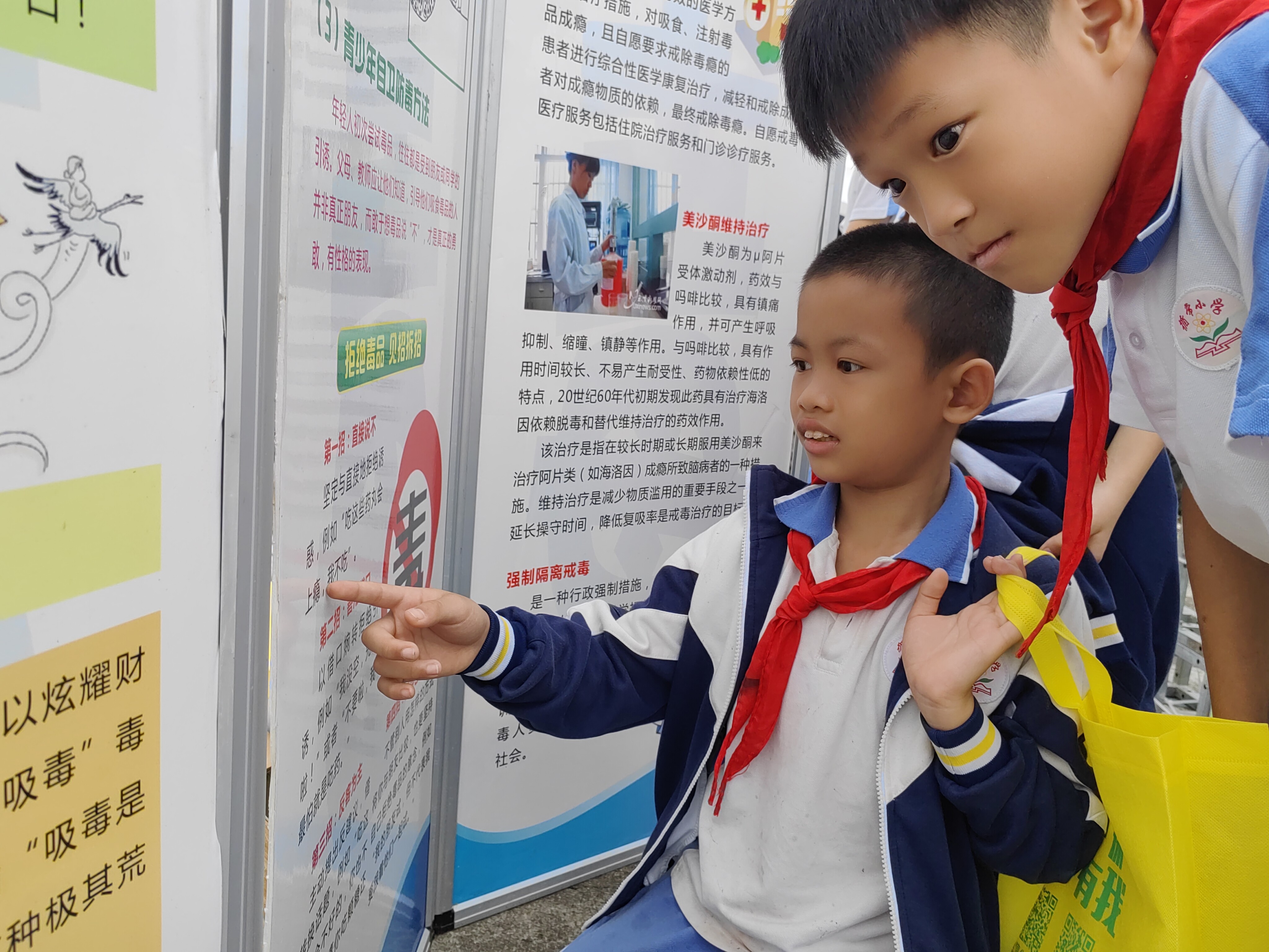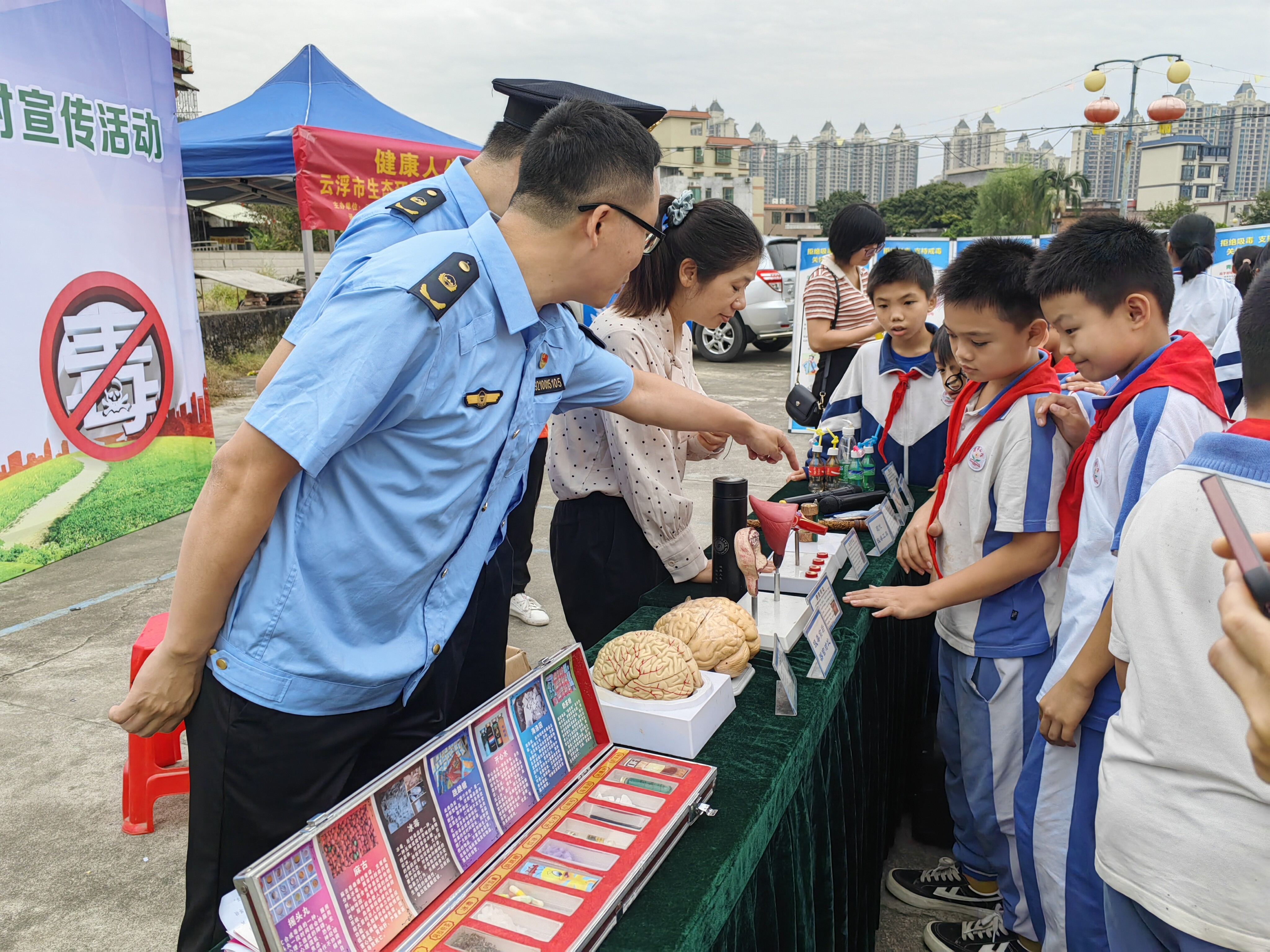 活动期间,市生态环境局还邀请了循常小学师生到现场参加活动,并通过悬挂禁毒标语、派发宣传单张、设置禁毒专题展板、展示仿真毒品模型,以及开设禁毒小课堂进行情景演练、有奖问答等方式,全方位、多形式地向当地群众以及小学生宣传禁毒知识。