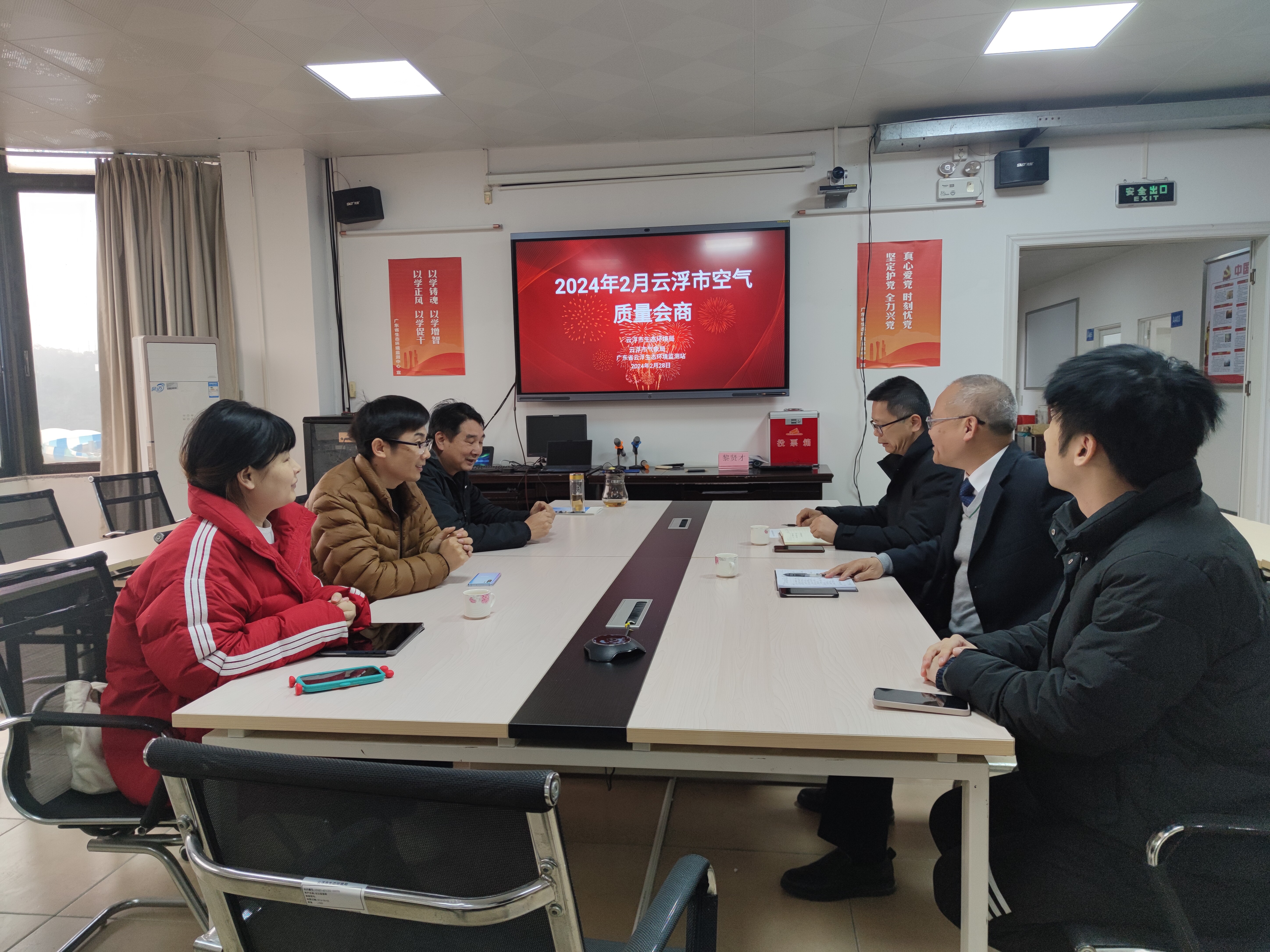 2024年2月28日上午,为总结2月大气污染情况,提前部署我市3月大气污染防治工作,云浮市生态环境局、云浮市气象局、广东省云浮生态环境监测站在广东省云浮生态环境监测站四楼会议室召开云浮市2月空气质量会商会议。市生态环境局大气环境科张雄波、市气象局气象台台长钟珑、广东云浮生态环境监测站副站长陈惠以及技术单位壹点科技(广州)有限公司相关人员参加会议。