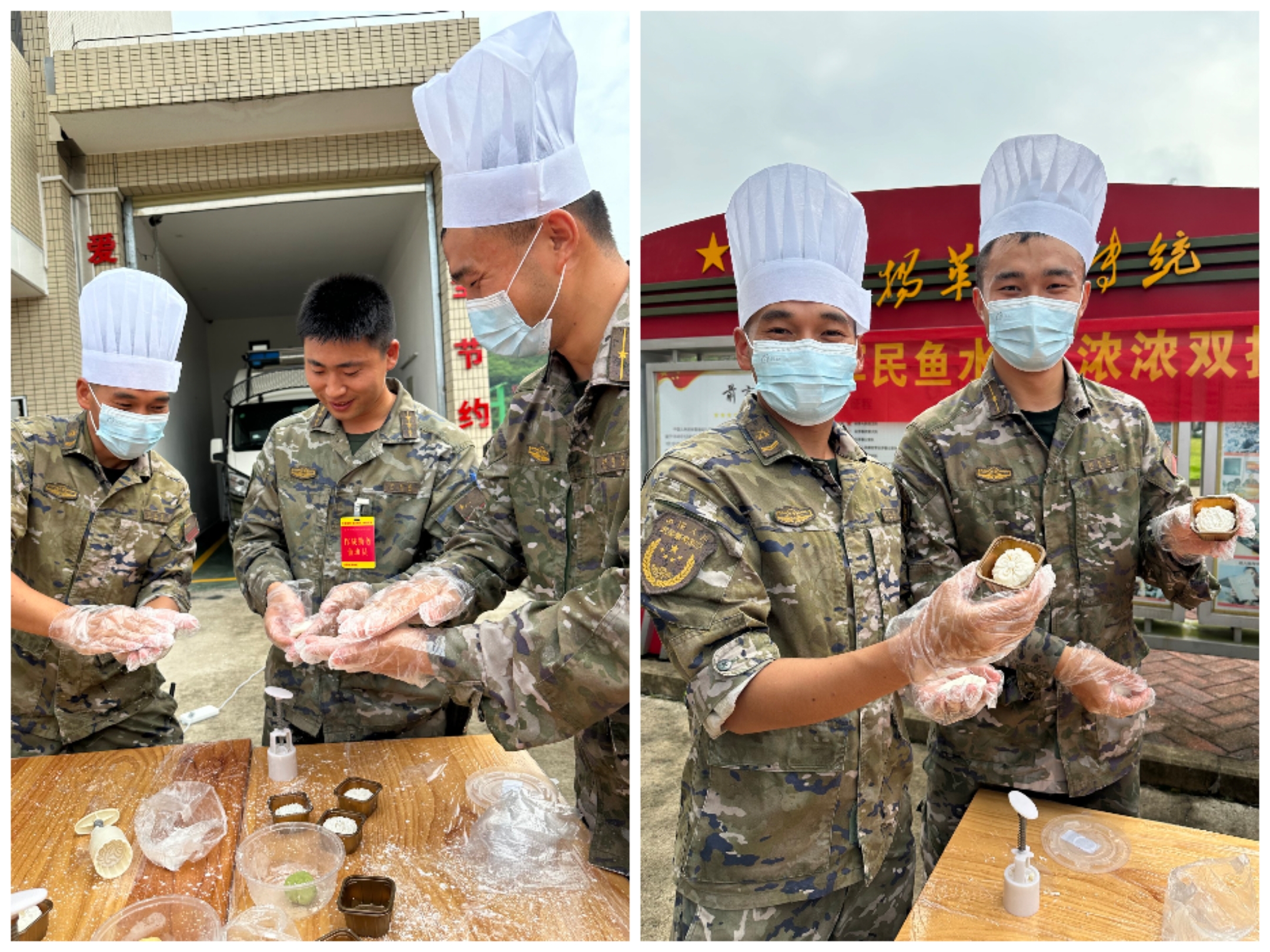 退役军人志愿者们提前筹备月饼食材,邀请面点老师现场教官兵们亲手制作月饼,共同分享节日的喜悦。揉面团、包馅、滚圆、压模、脱模、成型,不一会儿,在面点师的悉心指导下,大家学会了制作小巧精致的月饼。武警官兵们、退役军人志愿者们和工作人员一同品尝自己的劳动成果,其乐融融,空气中散发着香甜的味道。“每逢佳节倍思亲,今年是我在部队的第三个中秋节,太久没有回家了,非常想家,手工制作月饼非常有意义。祝愿远在老家的亲人们中秋快乐、身体健康。”湖南籍士兵参加完活动激动地说。