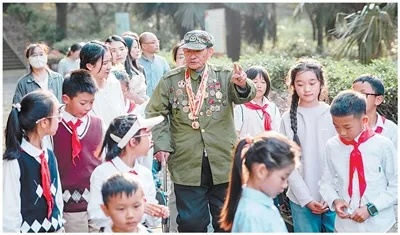 累累伤痕,换来了如今幸福生活。近日,宣城市退役军人事务局组织老兵赴市第十一小学开展爱国主义教育活动。讲台上,鲍启太告诉孩子们和平的珍贵与奋斗的意义,叮嘱孩子们“一定要好好学习”。当红领巾系上脖颈,老人笑容灿烂,仿佛看到了红色血脉在稚嫩肩头延续。