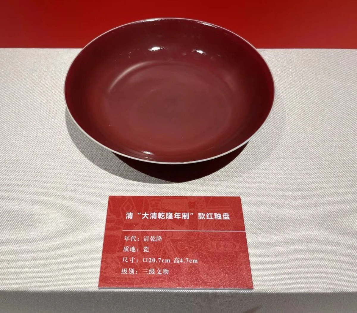 清代“大清乾隆年制”红釉盘赏析