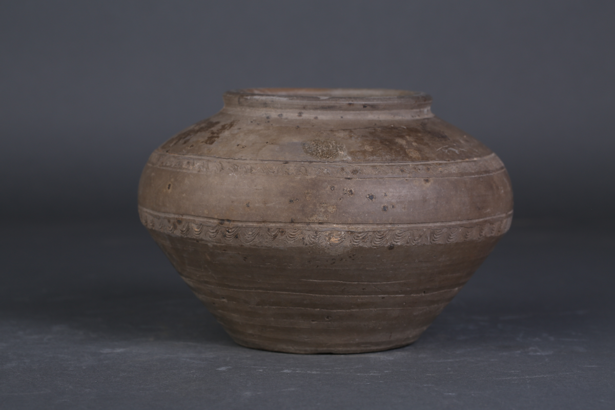 汉灰陶弦纹小罐鉴赏