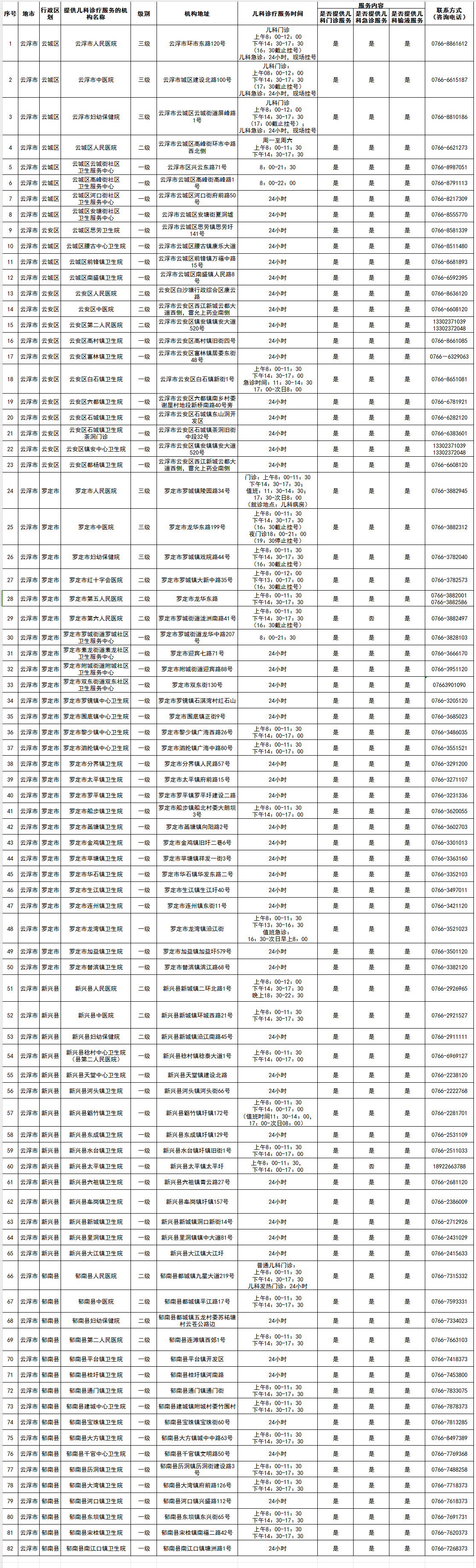 信息公布!云浮全市82家医院提供儿科诊疗服务!