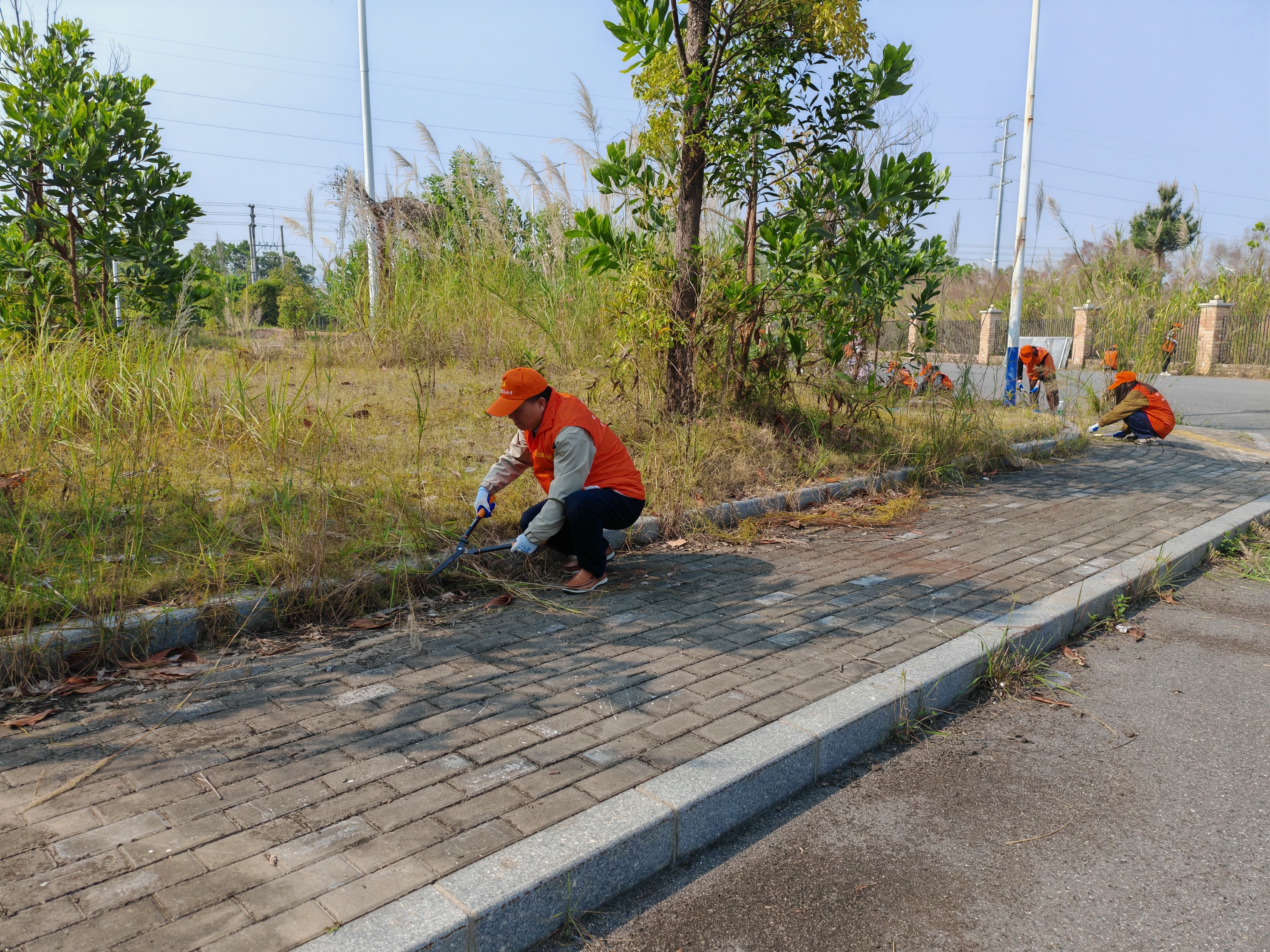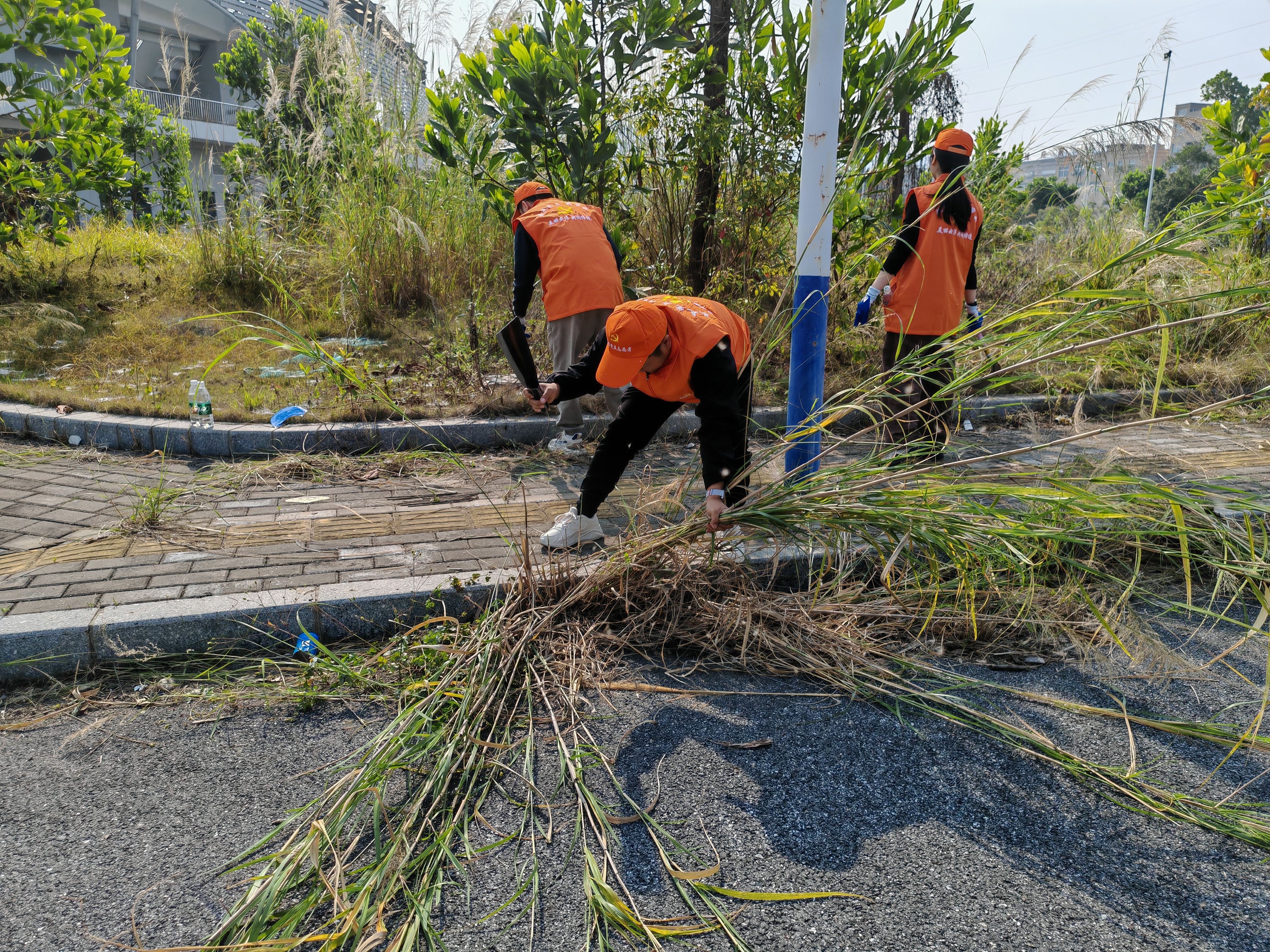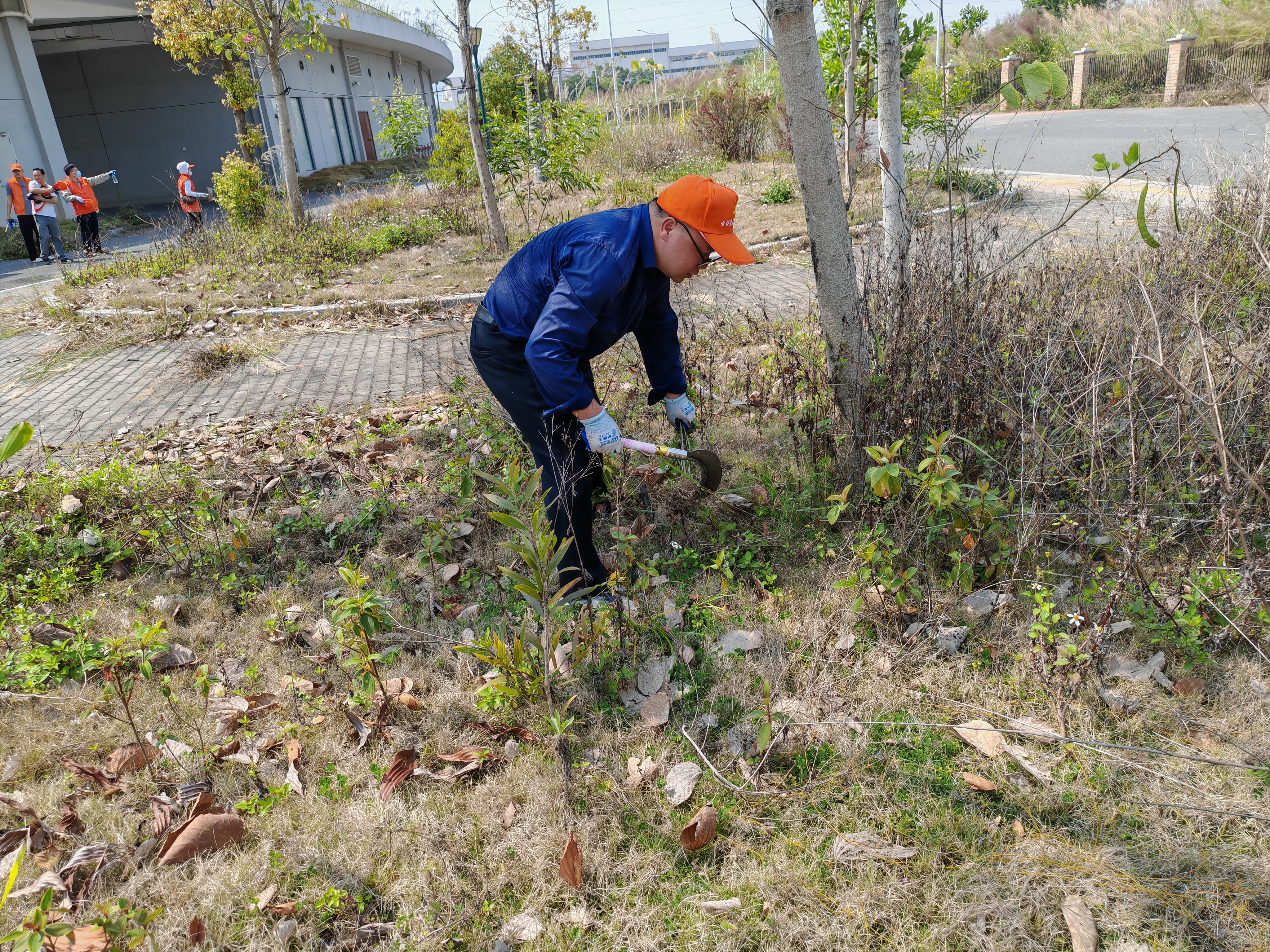 活动现场,尽管天气炎热,党员和团员们分成若干小组,迅速投入到紧张而有序的劳动中。电动割草机除草、锄地平整、垃圾杂草清理,每一项任务都凝聚着他们的汗水与努力。