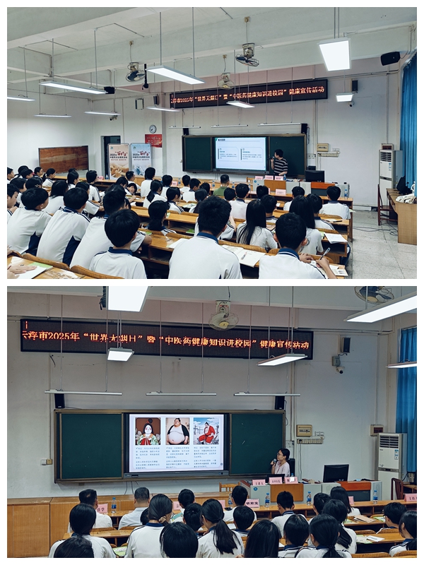 活动现场先后开展了“拒绝烟草诱惑,对第一支烟说不!”健康知识讲座和“中医药助力学生体重管理”专题讲座,向学生普及吸烟危害、中医药保健及科学体重管理等健康知识,推广中医“治未病”理念,帮助青少年树立健康生活方式。在“拒绝烟草诱惑,对第一支烟说不”横幅上签名承诺环节,同学们积极响应,在横幅上郑重签名,表达拒烟决心。随后的健康知识有奖问答更是将气氛推向高潮,学生们踊跃抢答,现场互动热烈,充分展现了青少年对健康知识的浓厚兴趣。