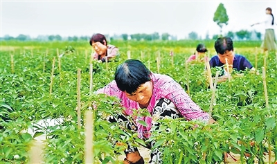 “土地流转租金一年1000元,务工每月能挣2000多元,工作和照顾家里两不误,这日子越过越红火!”在辣椒基地务工的村民吴大婶说。