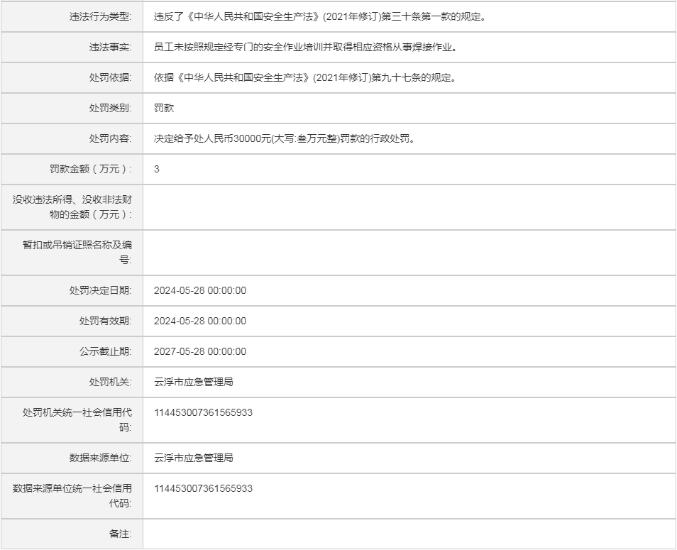 (云)应急罚〔2025〕16号中电建(云浮)绿色矿业有限公司