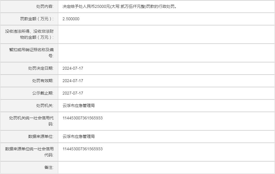 (云)应急罚〔2025〕16号中电建(云浮)绿色矿业有限公司