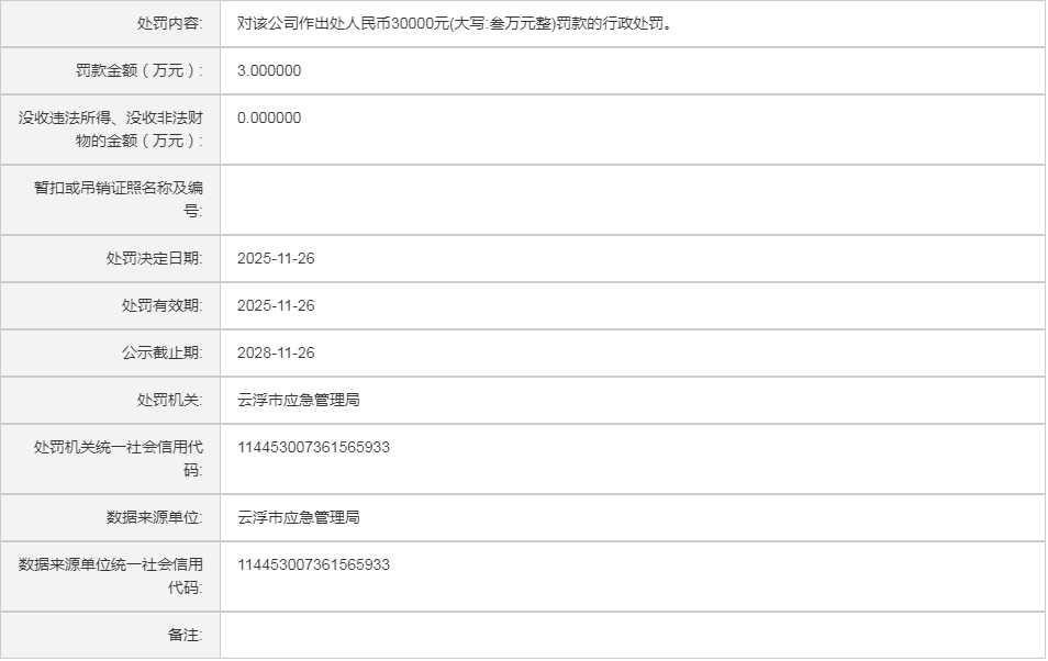 (云)应急罚〔2025〕16号中电建(云浮)绿色矿业有限公司