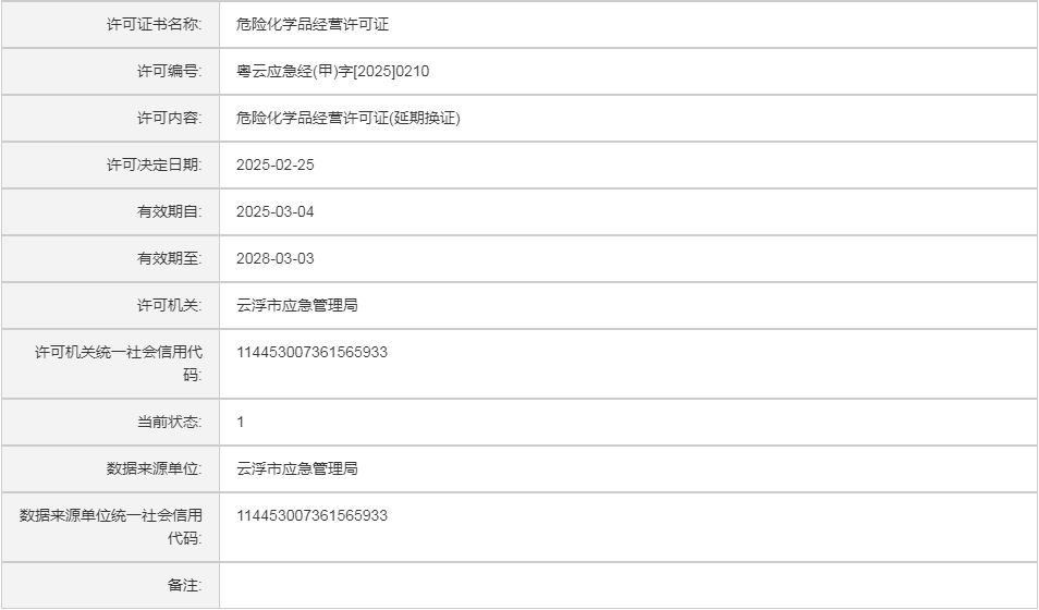 云应急(危化)许证决字〔2026〕2号云浮市鑫隆汇环保新材料有限公司危险化学品安全生产许可证(延期换证)
