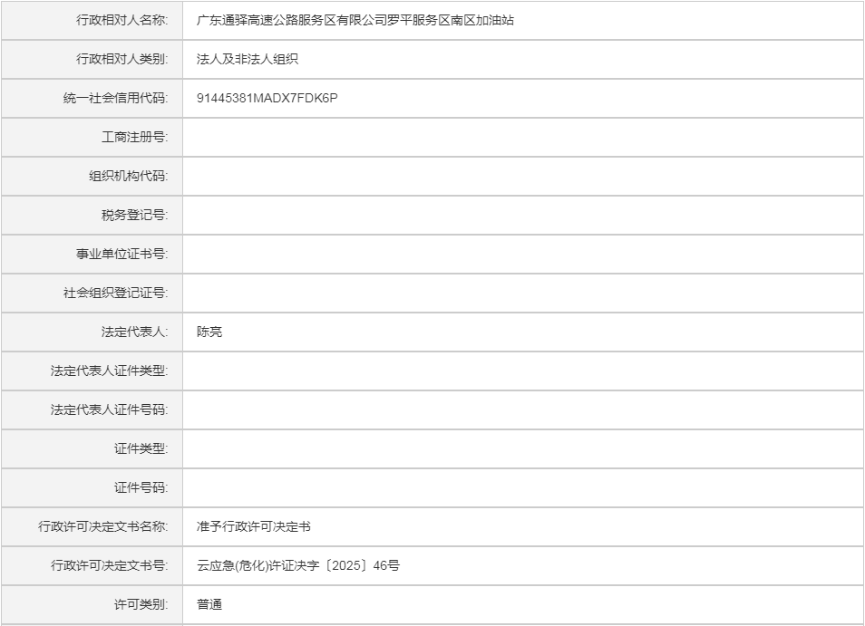 云应急(危化)许证决字〔2025〕46号广东通驿高速公路服务区有限公司罗平服务区南区加油站危险化学品建设项目安全设施设计审查意见书