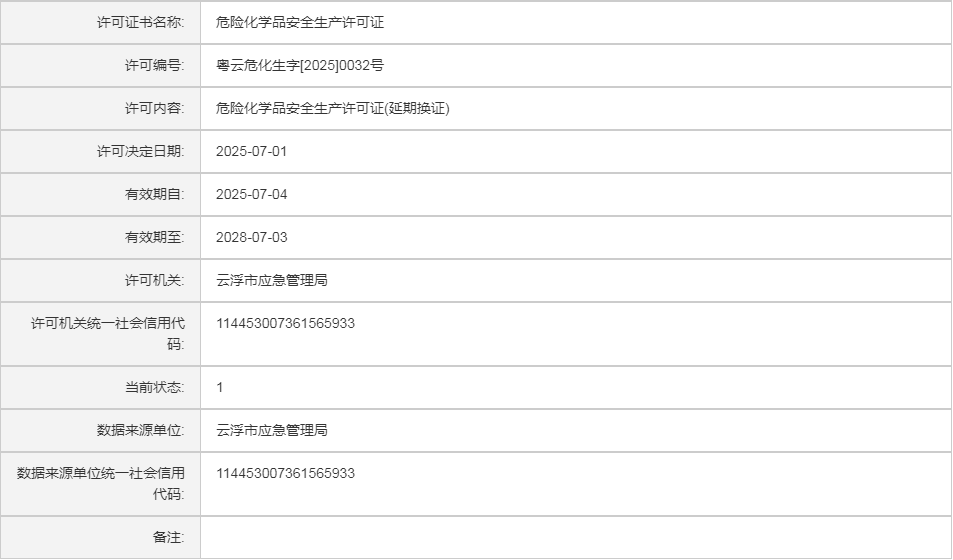 云应急(危化)许证决字〔2025〕49号云浮晨宝新材料有限公司危险化学品安全生产许可证(延期换证)