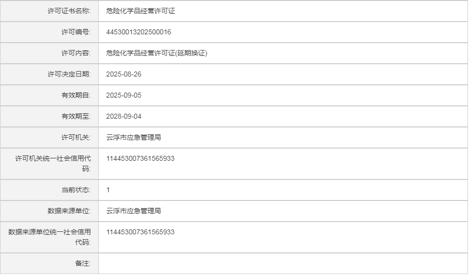 云应急(危化)许证决字〔2026〕2号云浮市鑫隆汇环保新材料有限公司危险化学品安全生产许可证(延期换证)