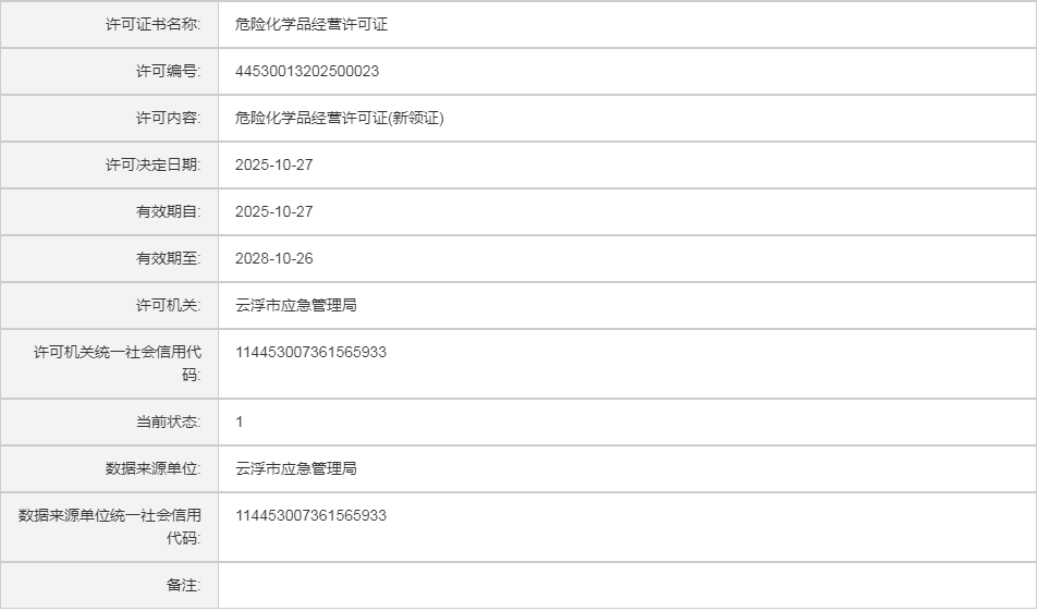 云应急(危化)许证决字〔2026〕2号云浮市鑫隆汇环保新材料有限公司危险化学品安全生产许可证(延期换证)
