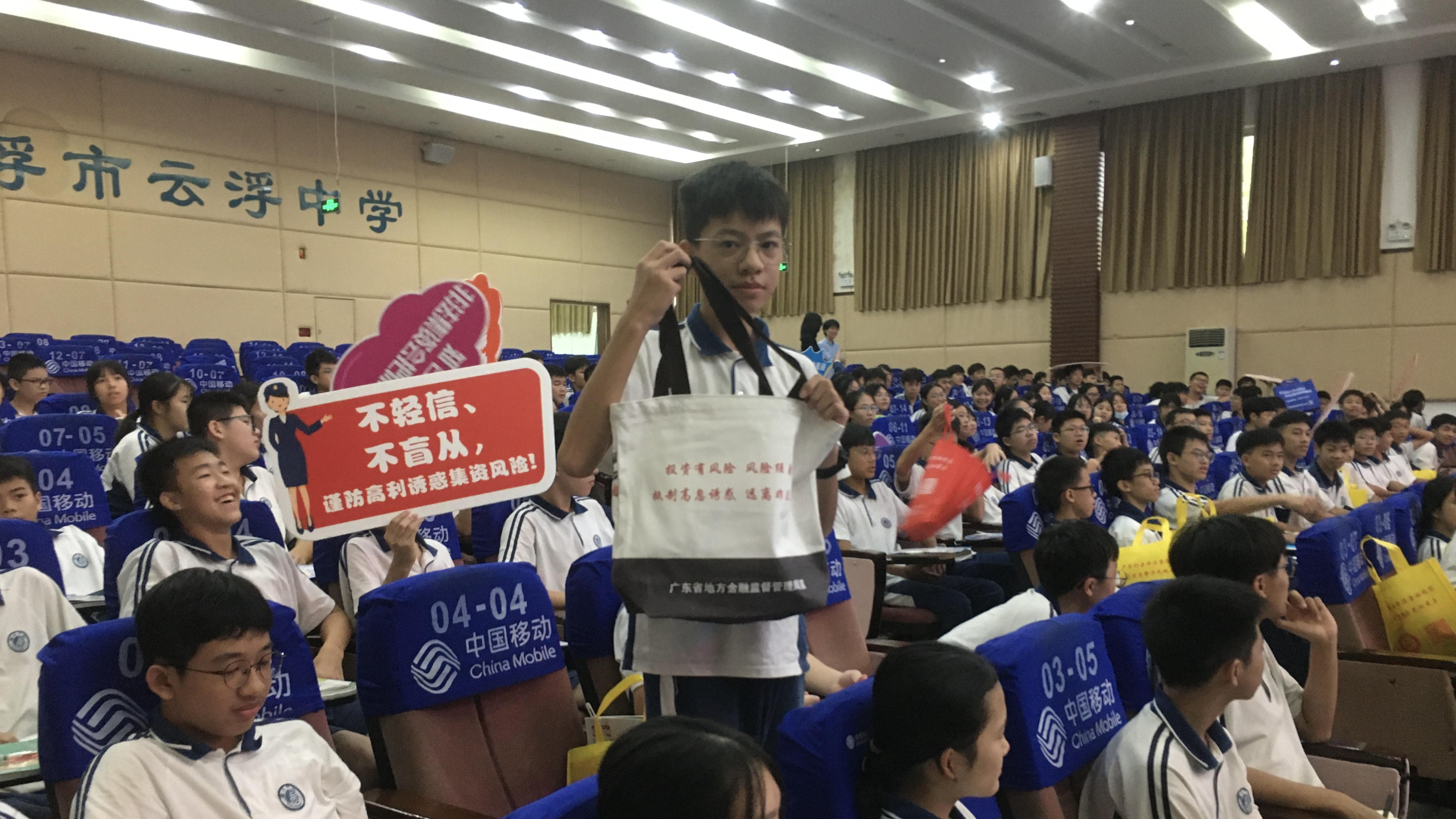 为深入实施“八五”普法规划和《青少年法治教育大纲》,落实国家机关“谁执法谁普法”普法责任制,增强青少年识别防范非法集资的能力,建设平安和谐的法治校园。云浮市处非办、云浮市金融工作局结合学习贯彻习近平新时代中国特色社会主义思想主题教育,持续开展普法宣传教育,10月19日,云浮市金融工作局在云浮中学开展以“守住钱袋子 护好幸福家”主题的防范非法集资宣传教育进校园活动。