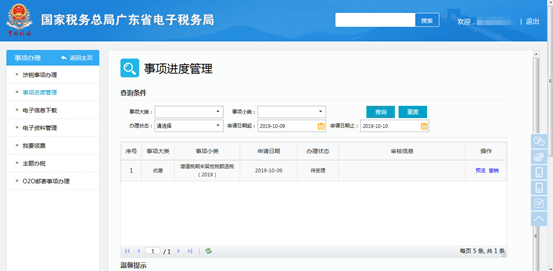 点击【事项进度管理】,可查询事项申请记录及办理情况