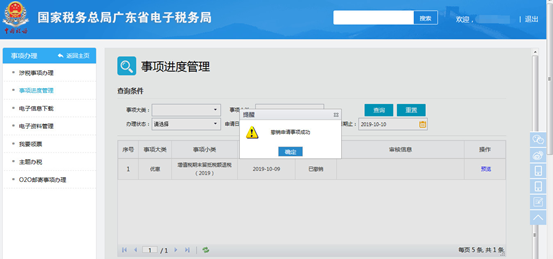 若办理状态为“待受理”,可点击【撤销】按钮撤销当前申请。