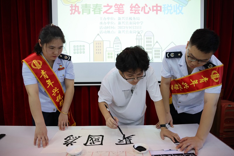 据悉,活动前期,新兴税务部门与学校联合开展了“执青春之笔 绘心中税收”作品征集活动,同学们踊跃参与,创作了一批主题鲜明、创意独特、时代感强的税收宣传作品,以图画、书法等形式书画出他们对税收的理解,一颗颗“学税法、懂税法”的种子在同学们心中生根萌芽。