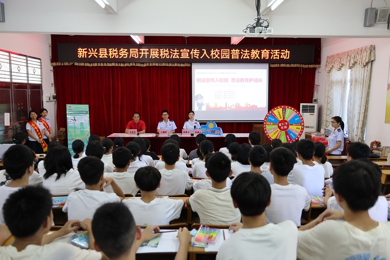 近年来,新兴县税务局非常重视青少年税法普及教育,将通过“走出去”“请进来”相结合的方式,持续开展内容丰富、形式新颖的青少年普法活动,促进税收文化与校园文化有机结合,不断提升税法在青少年学生中的认知度和影响力,进而带动每个家庭的纳税意识,在全社会形成依法诚信纳税的良好氛围。