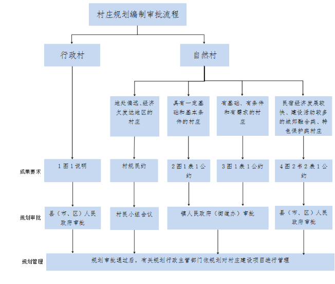 根据《住房城乡建设部关于进一步加强村庄建设规划工作的通知》(建村〔2018〕89号)、《省住建厅 省委农办 省财政厅 省国土资源厅关于全面加快乡村规划编制工作的通知》(粤建村〔2018〕90号)、《广东省村庄规划编制指引(试行)》精神,结合云浮实际,特制定本工作指引。 一、总体思路 深入贯彻习近平总书记在十九届中央政治局第八次集体学习时发表的重要讲话精神,认真落实市委六届四次全会精神,紧紧围绕“两新一前列”发展定位,按照因地制宜、循序渐进、统筹兼顾、协调发展的要求,立足全市自然村散、小、多和发展不充分、不平衡的实际,以自然村为单位,以共同缔造为方法,以人居环境整治和住房建设为重点,通过自下而上,上下结合,群众共谋共建共管共评共享,在加强对行政村规划建设统筹的基础上,分类编制让村民易懂、村委能用、镇(街)好管、便于实施的村庄规划,使村庄建设有规可依、人居环境整治有统筹安排,全面推进村庄规划建设,把全市村庄建设成为干干净净、整整齐齐、和和美美的生态宜居美丽乡村,推动乡村振兴走在全省前列。 二、村庄规划编制要求 以行政村规划统筹各自然村规划。行政村规划的主要内容是落实县(市、区)域乡村建设规划的要求,确定行政村级的垃圾治理、卫生厕所、污水治理、公共设施、村道建设等重点建设项目布局(包括在自然村的布点)。规划成果形式为:“1图1说明”(“1图”指行政村空间布局规划图,“1说明”指规划说明)。 在行政村统筹规划的基础上,综合考虑辖区内村庄现状条件和发展需求,深入调查研究和广泛征求群众意见,将自然村划分为四类,在规划说明中形成《自然村规划编制分类一览表》,在镇(街)、村委、自然村向社会和群众公示,作为行政村规划的内容一并报县(市、区)人民政府审批。 自然村的具体分类和规划编制如下: 第一类:除城郊融合类、特色保护类村庄以外,地处偏远、常住人口100人以下的村庄。此类村庄的规划要求是,制定实现人居环境干净整洁的有关文字规定,并纳入村规民约。规划成果形式为:“1公约”(村庄规划建设管理公约)。 第二类:具有一定基础和基本条件的村庄。此类村庄的规划要求是,编制以人居环境整治为重点的村庄整治规划,明确村庄建设边界,提出垃圾治理、卫生厕所、污水治理、公共设施、村道建设等整治项目并明确时序。规划成果形式为:“2图1表1公约”(“2图”是指村庄用地规划图、村庄整治项目布局规划图;“1表”是指村庄整治项目表;“1公约”是指村庄规划建设管理公约)。 第三类:有基础、有条件和有需求的村庄。此类村庄的规划要求是,在人居环境整治规划基础上编制更加全面的村庄规划,制定厕所粪污治理项目、农房建设和改造、村容村貌提升和长效管护机制建设等相关措施。规划成果形式为:“3图1表1公约”(“3图”是指村庄用地规划图、村庄整治项目布局规划图、村庄建设项目布局规划图;“1表”是指村庄规划建设项目库;“1公约”是指村庄规划建设管理公约)。 第四类:市区、县城和中心镇附近的城郊融合类村庄,以及历史文化名村、传统村落、特色景观旅游名村等具备自然历史文化特色、资源丰富的特色保护类村庄。此类村庄的规划要求是,在第三类村庄规划的基础上提出建设管控要求和特色风貌保护要求。规划成果形式为:“4图2书2表1公约”(“4图”是指村庄用地现状图、村庄用地规划图、村庄建设项目布局规划图、农房建设总平面图;“2书”是指规划说明书、公众参与报告书;“2表”是指村庄建设需求台账、村庄规划建设项目库;“1公约”是指村庄规划建设管理公约)。 暂时没有条件编制村庄规划的村庄,可以将县(市、区)域乡村建设规划、镇(街)总体规划作为村庄建设、人居环境整治和乡村建设规划许可的管理依据。 三、全面推行共谋共建共管共评共享工作机制 落实“美丽云浮,共同缔造”行动,全面推行由镇人民政府(街道办)组织领导、村委会和村民发挥主体作用、规划编制人员负责技术指导,共谋共建共管共评共享的村庄规划编制工作机制。 (一)自下而上,村委会组织村民充分表达意愿和建设需求,全程参与村庄规划编制,并将经批准的村庄规划纳入村规民约执行。 (二)村庄规划编制要广泛听取群众的需求,让村民参与规划,在规划前期、中期、后期都要征求村民的意见和建议,尊重乡村本土风俗和习惯,力求规划切合实际,充分反映村民的意愿。 (三)镇人民政府(街道办)负责组织村民参与规划编制工作,召开村民代表大会,组织协调各有关单位配合开展村庄调研、规划工作,并依法组织规划审查和报批工作。 (四)城乡规划部门负责村庄规划编制工作的业务指导。免费提供农房建筑设计参考图集供村民参考,引导村庄形成相对统一的住房风格风貌,推动实现农房建筑规整化。建立村庄规划人才库,为村庄规划编制提供技术支撑。 (五)建立村庄规划编制“以奖代补”激励机制,由各县(市、区)制定奖补标准,对村委会、自然村自行组织编制,经审批可实施的村庄规划,给予适当奖励,激发群众积极参与村庄规划编制工作的热情。 四、建立符合农村实际的规划审批和建设管理机制 各地要按照深化“放管服”改革的要求,制定适用于不同类型村庄的规划成果审批程序。 (一)第一类仅用文字规定的村庄规划,经村民小组