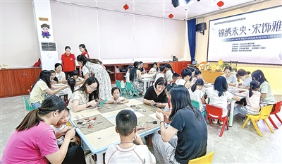 本报讯 (云浮融媒记者 刘友文 冯荣昌) 为弘扬中华优秀传统文化,增进少年儿童对非物质文化遗产的认知,10月19日上午,云浮市岭南书院在市图书馆举办以“锦绣未央·宋饰雅集”为主题的传统文化文明实践活动。活动采用讲座与亲子互动相结合的形式,吸引15组家庭积极参与。