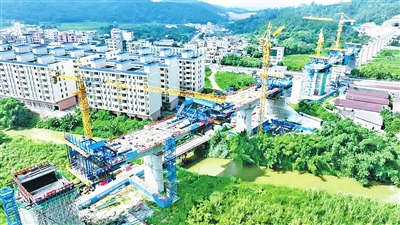 “广湛铁路十八标项目主要负责佛山市高明区更合镇到新兴县太平镇特大桥,主要建设25座桥梁、24座路基、4座隧道、1个站场路基,目前已经贯通3座隧道,剩下1座隧道正在施工中,预计2025年11月贯通。”中铁二局集团有限公司副总工陈恒介绍说。