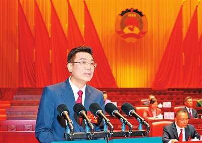 1月14日上午,省政协十三届三次会议在广州开幕。林克庆作政协常委会工作报告。 (来源:广东政协网)