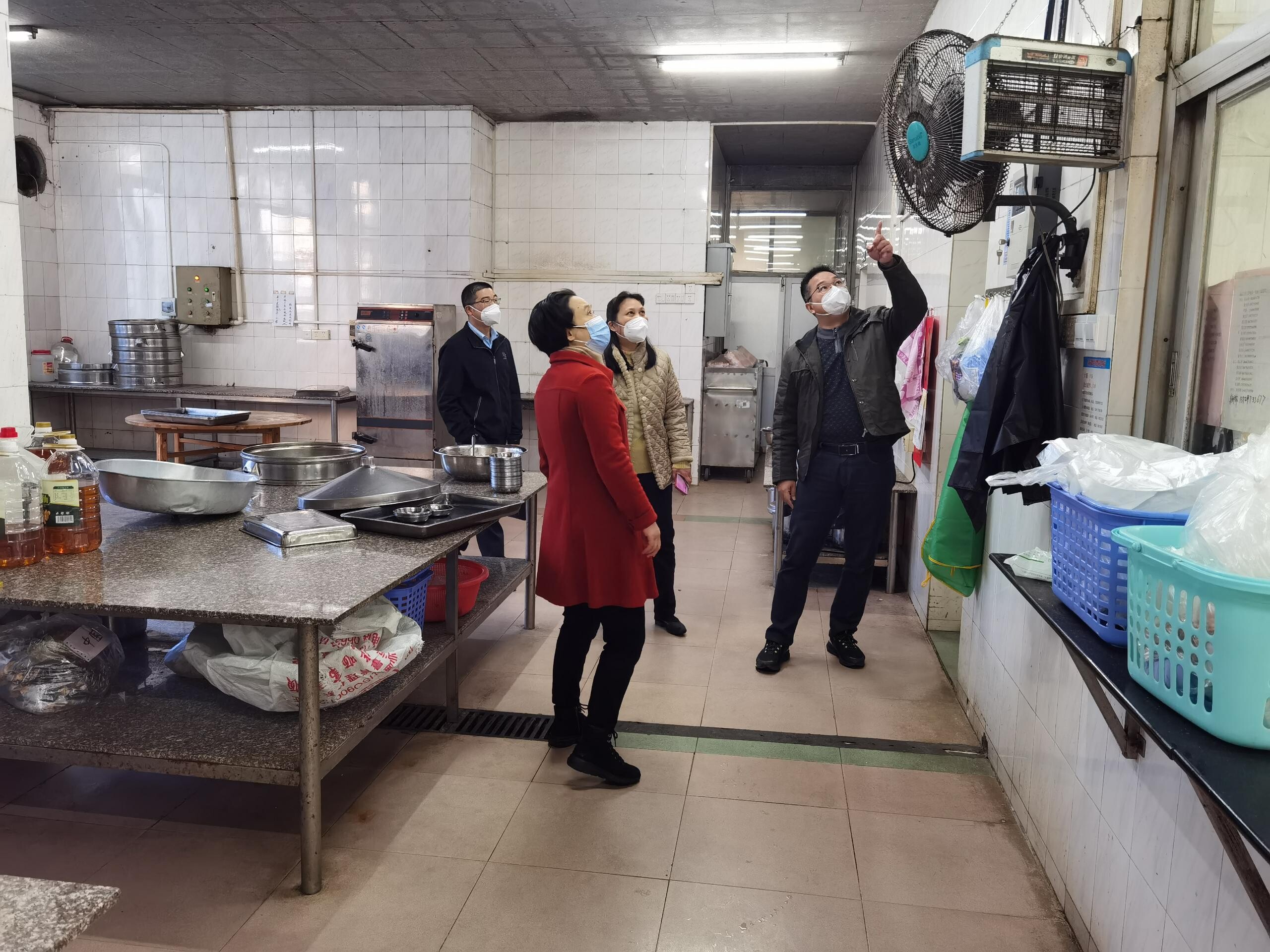 图1、检查组一行检查市中医院食堂用电线路