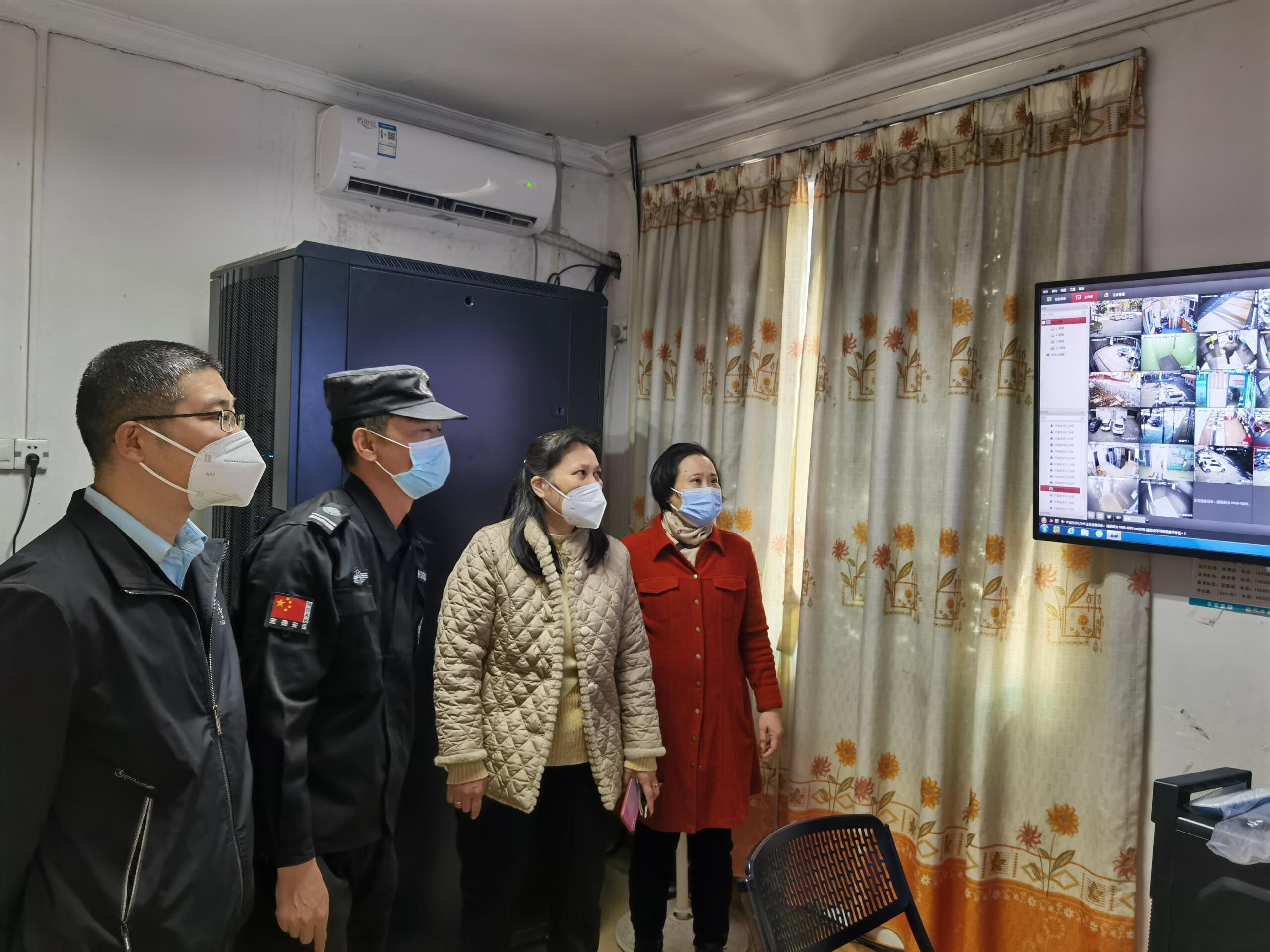 图3、检查组一行查看市中医院值班室监控